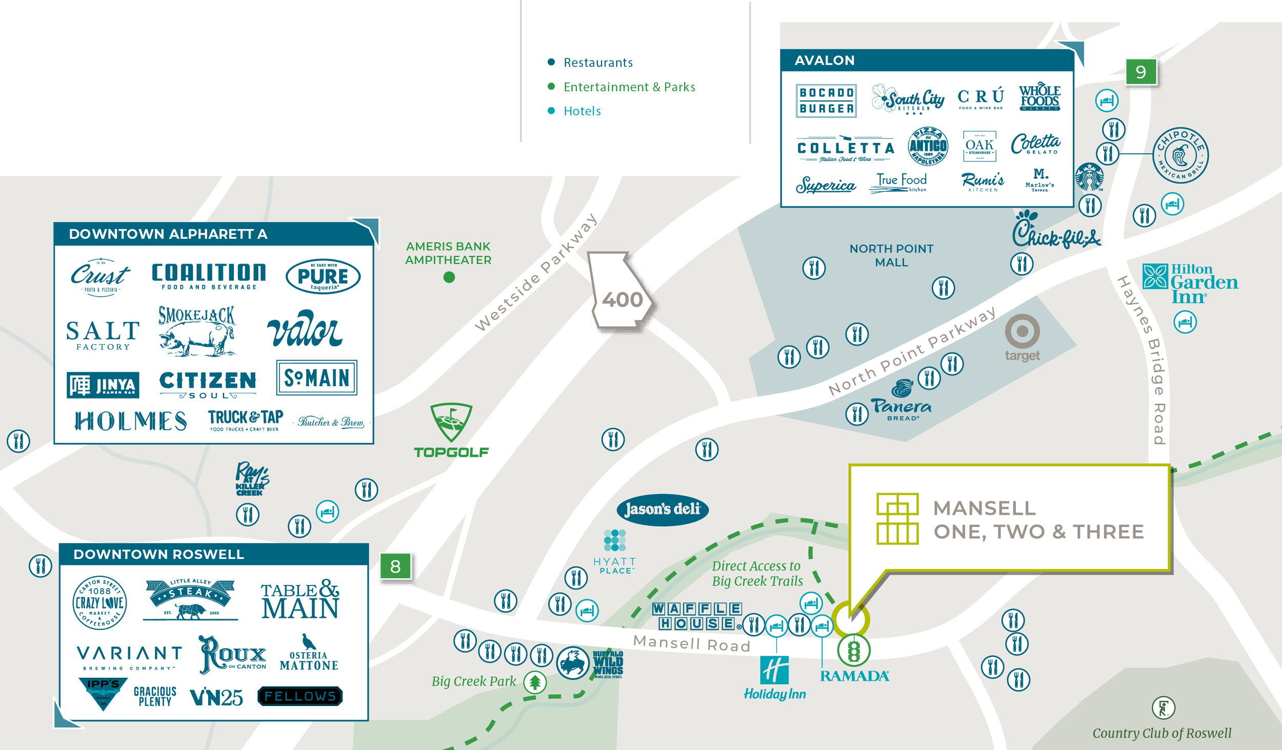 Enveloped by Alpharetta’s growing development landscape, experience choice dining, retail favorites and recreation destinations at every turn.